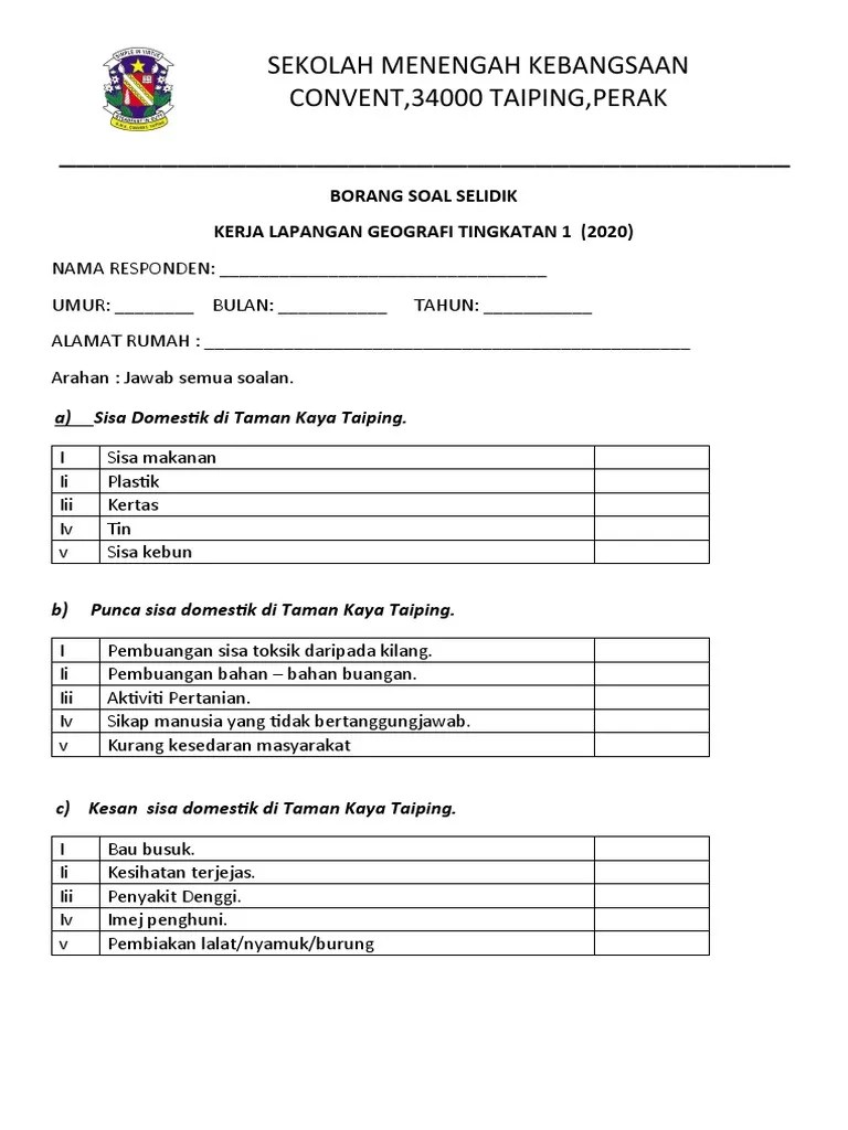 Kerja Lapangan Geografi Tingkatan 1 Sisa Domestik 2020 - Contoh Geografi Pt3 Jawapan 2022 Tingkatan 3 Paling Tepat